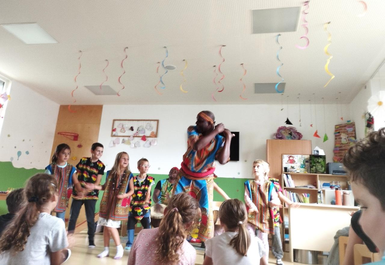 V září máme představení umělecké skupiny Emongo: Africká kultura, posloucháme vyprávění ze života v Kongu, hru na bubny, účastníme se aktivně programu s hudbou s tancem
