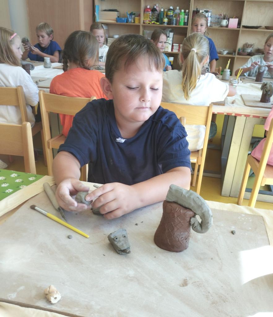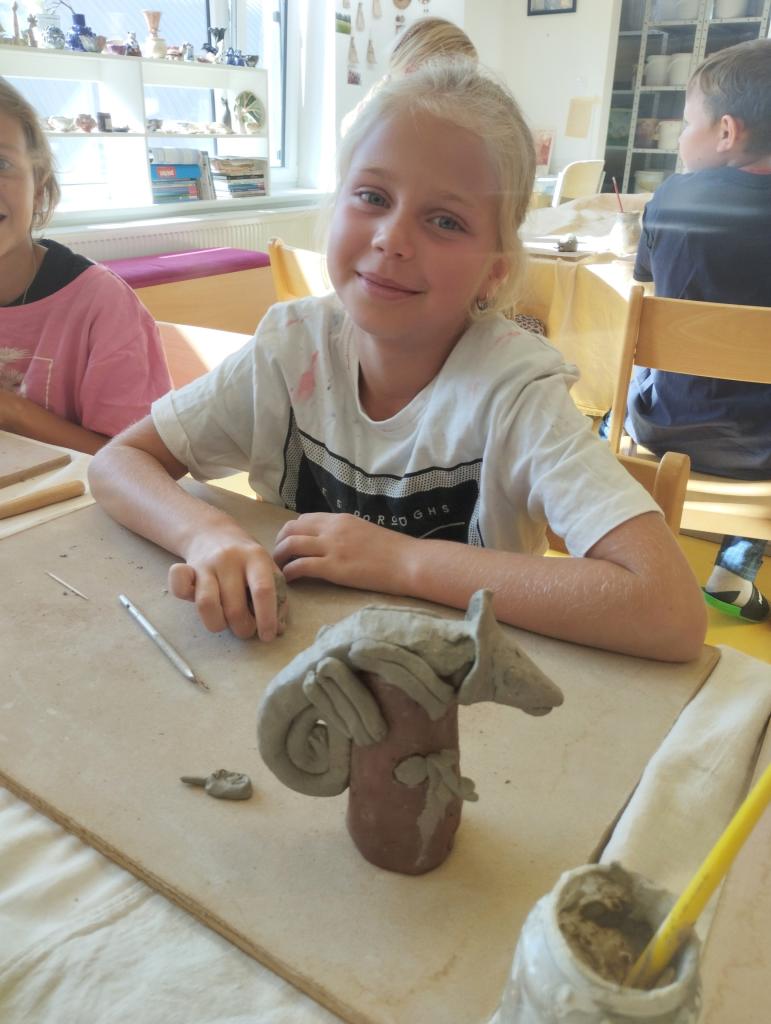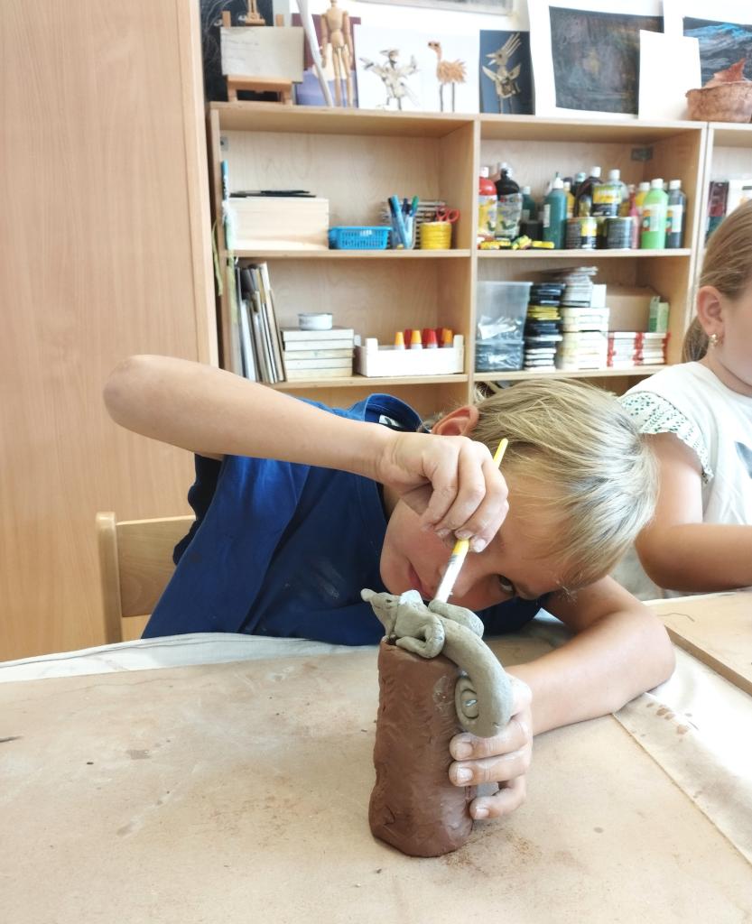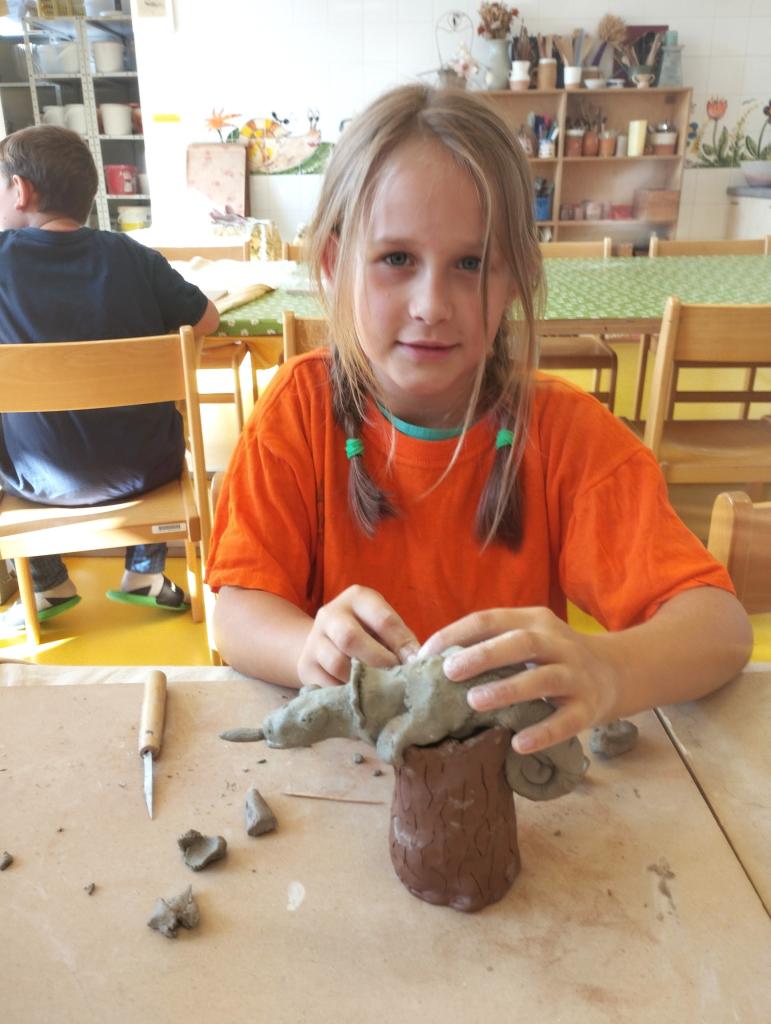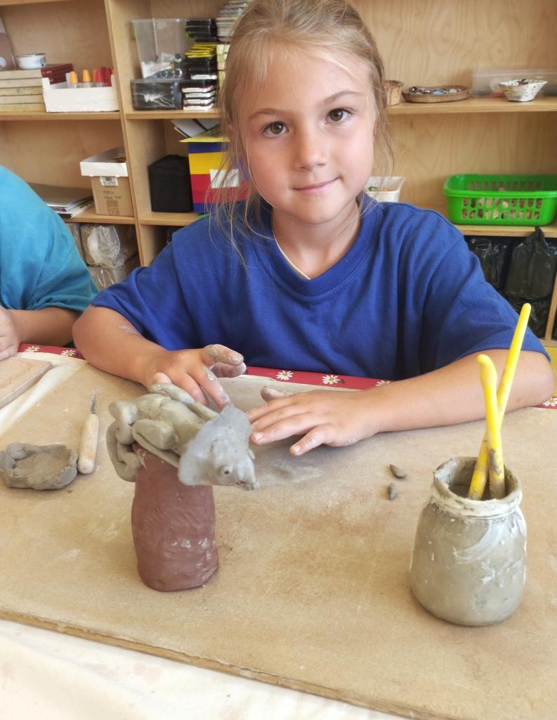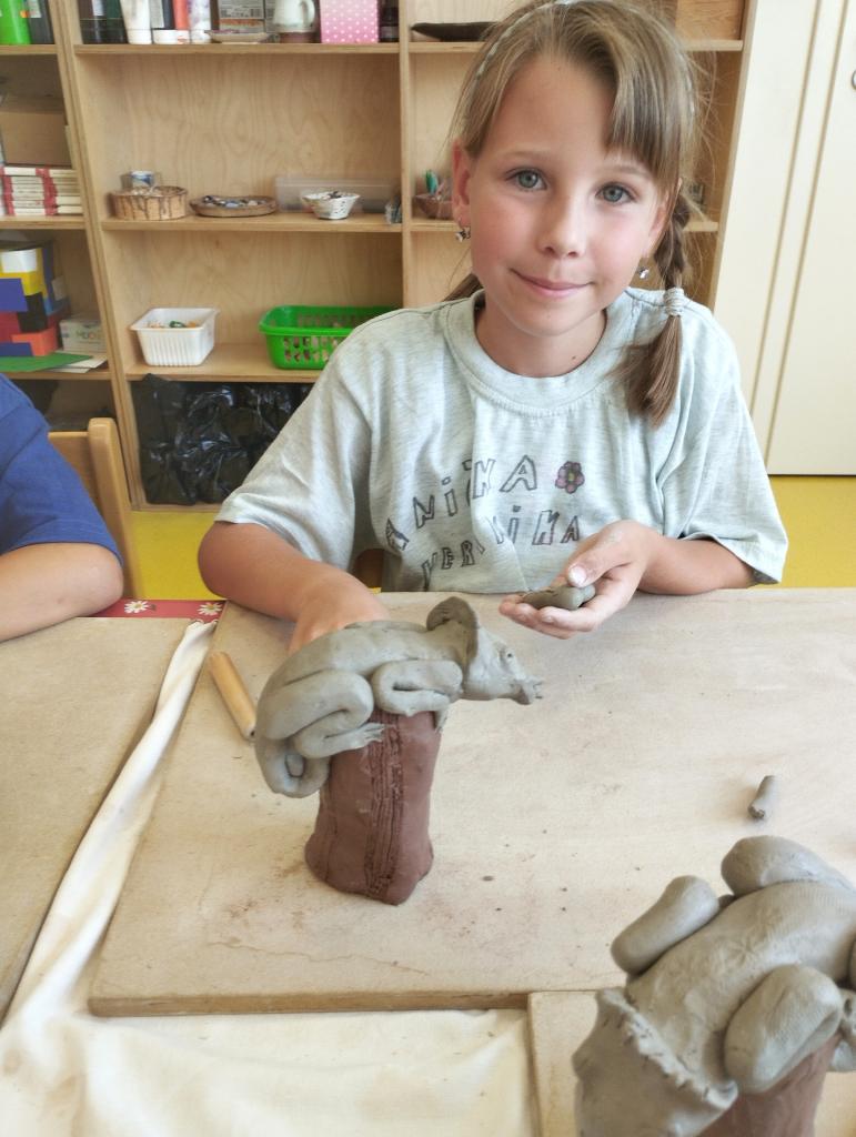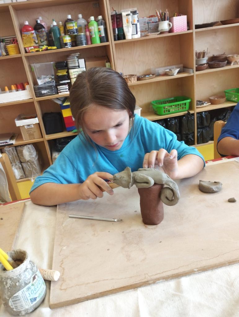 Na 1. schůzce keramického kroužku modelujeme chameleona