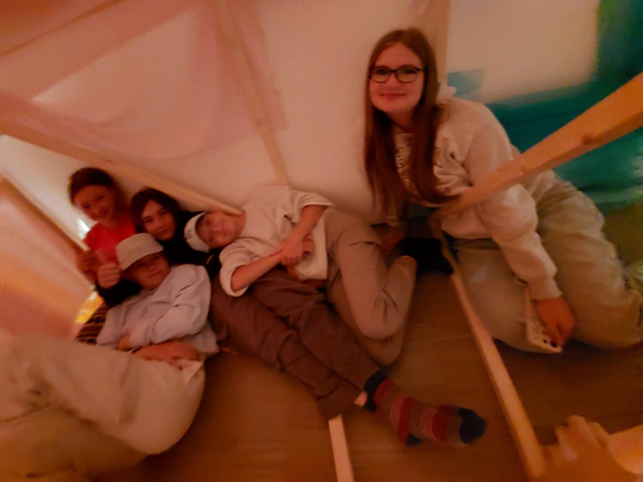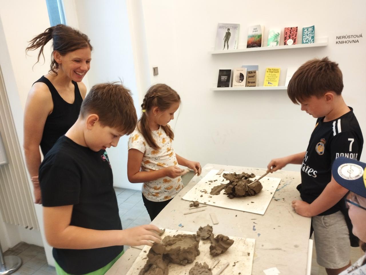 Čtvrtek 17.7.: Mávání řidičům, poznávací hra na náměstí v Benešově, povídání o prostoru pro děti a hru s Martinem a Ladou, modelování kuličkové dráhy, hledání hraček v hoblinách, stavba ze dřeva, doupata, na honěnou a schovávanou mezi závěsy, kukátka, skoky do riflí, lezení oknem a nejlepší pizza :)